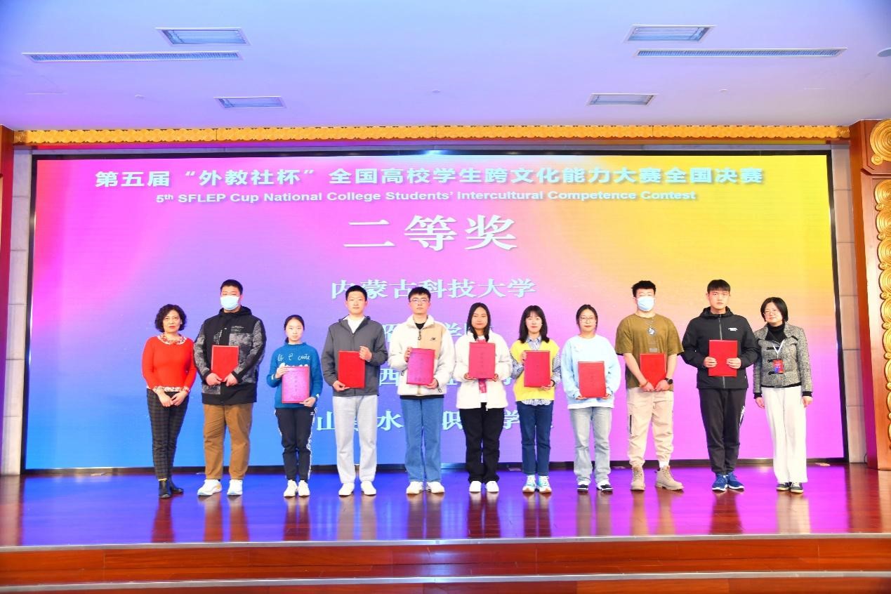 近日,第五届“外教社杯”全国高校学生跨文化能力大赛全国总决赛在上海成功举办。学校外国语学院袁帅、文法学院李雨静、理学院李浩然三名学生组队,斩获内蒙古自治区区赛冠军,参加全国总决赛荣获二等奖。