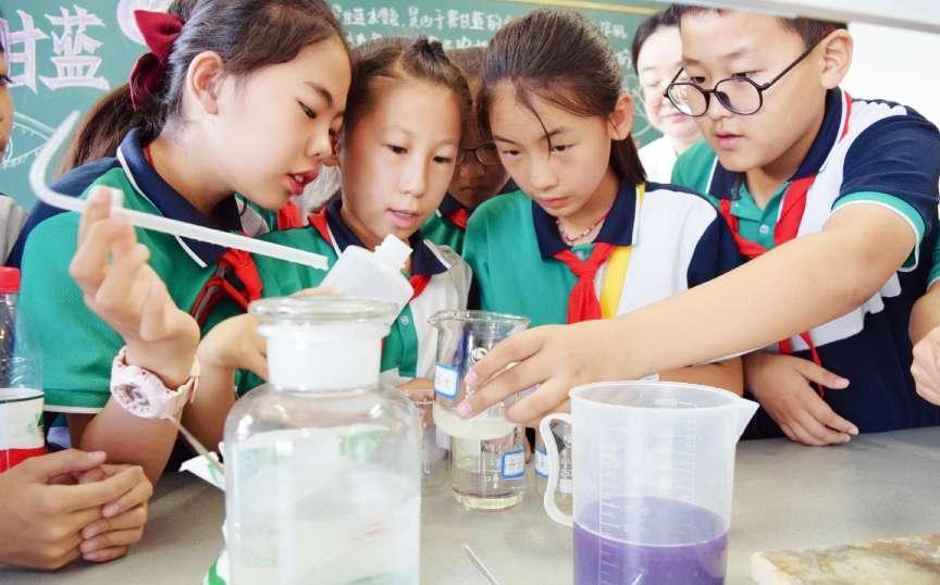 化学与化工学院陈晓霞、王丽两位老师演示了紫甘蓝变色科普实验,让爱科学、学科学、用科学、崇尚科学逐渐成为少年儿童的主流价值追求,让科学的种子在孩子心中生根发芽。