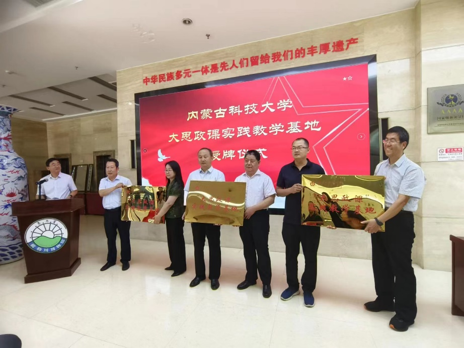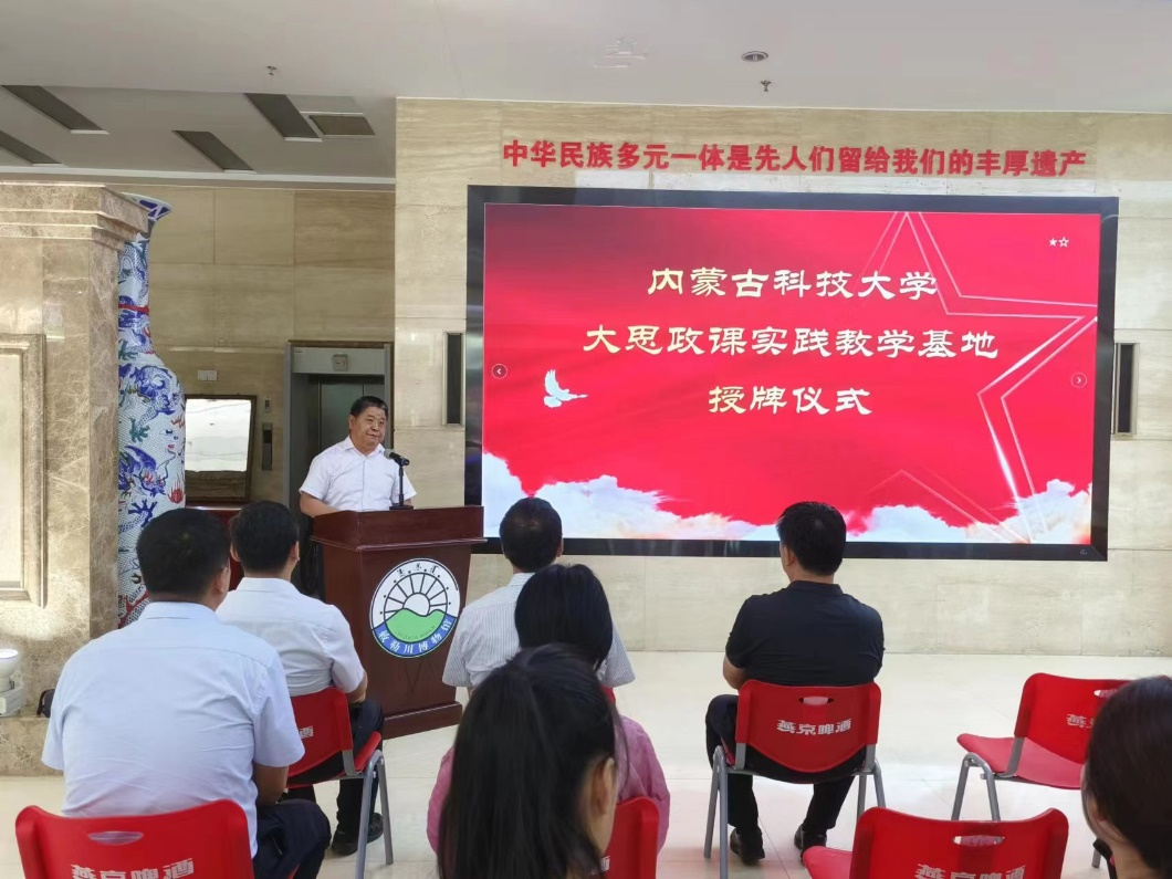 8月22日,LETOU国际米兰官网与土右旗“大思政课”实践教学基地授牌仪式在土右旗敕勒川博物馆举行。校党委副书记冯志强,统战部副部长王秀莉,马克思主义学院院长张光存、副书记副院长柴艳莎,土右旗旗委副书记张慧东,统战部副部长、民委主任王猛,土右旗敕勒川博物馆、文投公司、九峰山生态管委会等部门主要负责人和LETOU官网教师代表共同参加授牌仪式。