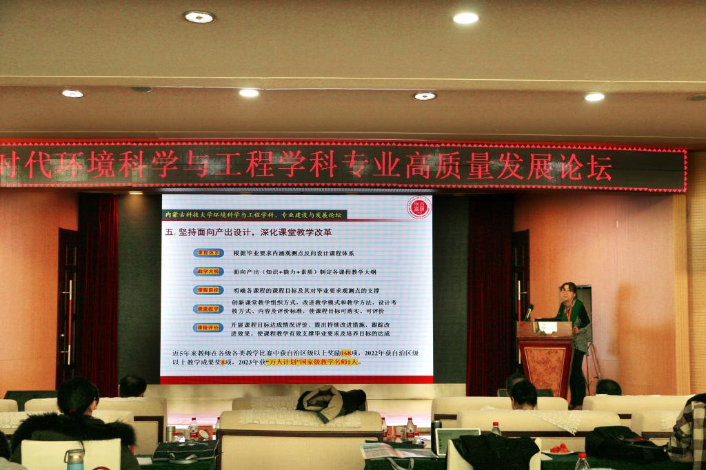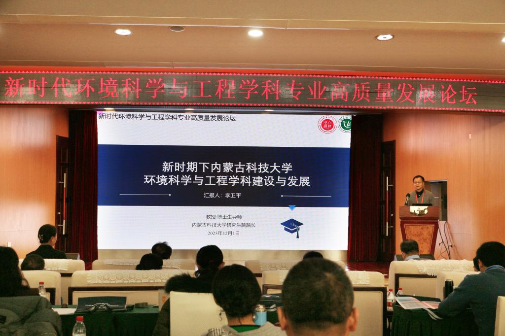 12月1日上午,“新时代环境科学与工程学科专业高质量发展”论坛在稀土国际大酒店举行,副校长屈忠义出席并致辞。来自北京师范大学、北京科技大学、华北电力大学、宁夏大学、内蒙古大学、西安建筑科技大学、上海第二工业大学、太原科技大学、内蒙古工业大学、LETOU国际米兰官网等高校的近百位专家学者、师生代表参加了论坛。