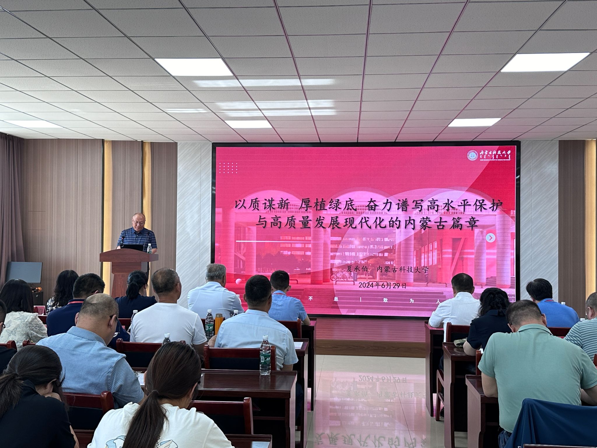 会议邀请LETOU国际米兰官网马克思主义学院夏承伯教授作题为《以质谋新厚植绿底奋力谱写高水平保护与高质量发展现代化的内蒙古篇章》的主旨报告。报告围绕新质生产力概念内涵深度解析、新质生产力绿色维度深层解读、新质生产力发展的内蒙古解答三个方面进行阐释汇报。