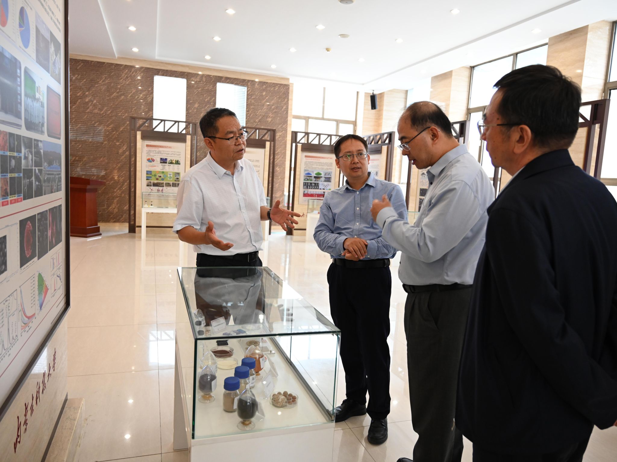 黄永德一行还参观了校史馆、稀土产业学院等,深入了解了学校的办学历史、文化传承及在稀土产业领域的研究成果。