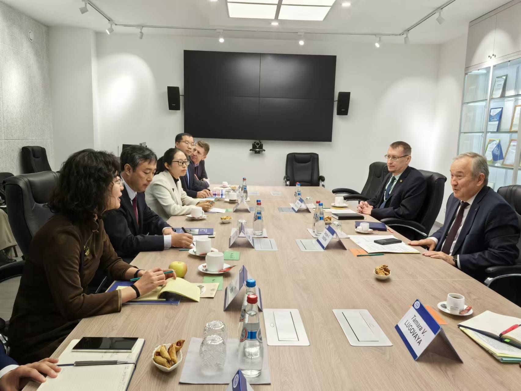 在白俄罗斯国立技术大学,双方一致同意共同构建校际高层定期互访和部门密切对接的合作机制,在学术交流、科技研发、学生交流、教师互访等领域加强合作。