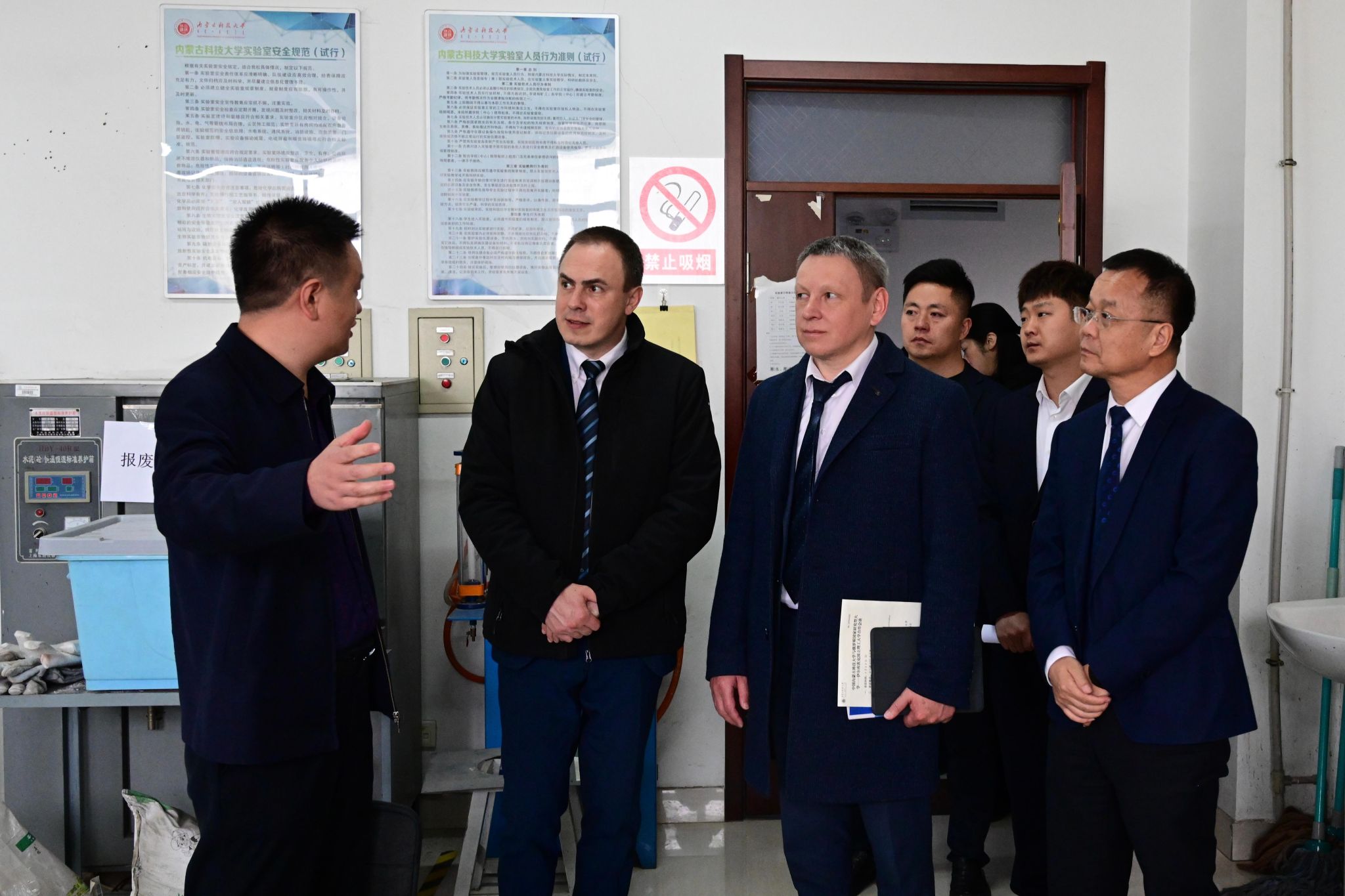 会谈结束后,米哈伊尔·卡尔尼亚科夫一行在副校长李卫平的陪同下,参观了校史馆、稀土产业学院及矿业与煤炭学院实验室。