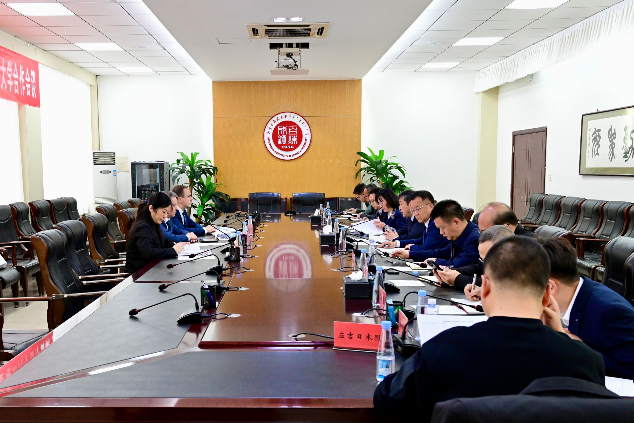 见面会上,校党委书记呼和对米哈伊尔·卡尔尼亚科夫代表团的到来表示热烈欢迎,并强调了两校合作对深化中俄教育交流、服务“一带一路”倡议的重要意义。他说,包头市被誉为“世界稀土之都”和“世界绿色硅都”,在稀土资源开发和绿色硅产业发展方面具有显著的优势和潜力。LETOU国际米兰官网始终以服务地方产业为己任,围绕功能材料研发、新能源技术等领域构建特色学科群,推动产学研深度融合,形成了“基础研究—技术开发—产业转化”的全链条创新体系。米哈伊尔·卡尔尼亚科夫对LETOU国际米兰官网的热情接待表示感谢并高度评价了学校在学科建设与科研创新领域的成果。