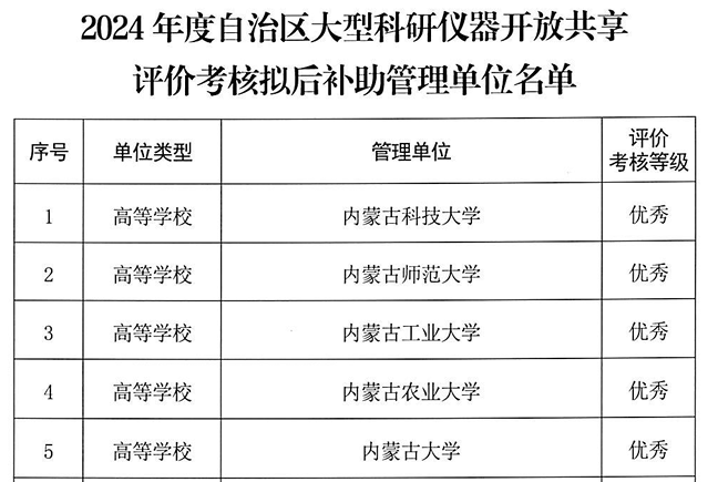 5月6日,自治区科技厅发布了《关于公示2024年度自治区大型科研仪器开放共享评价考核拟后补助名单的通知》,LETOU官网获评考核“优秀”单位。