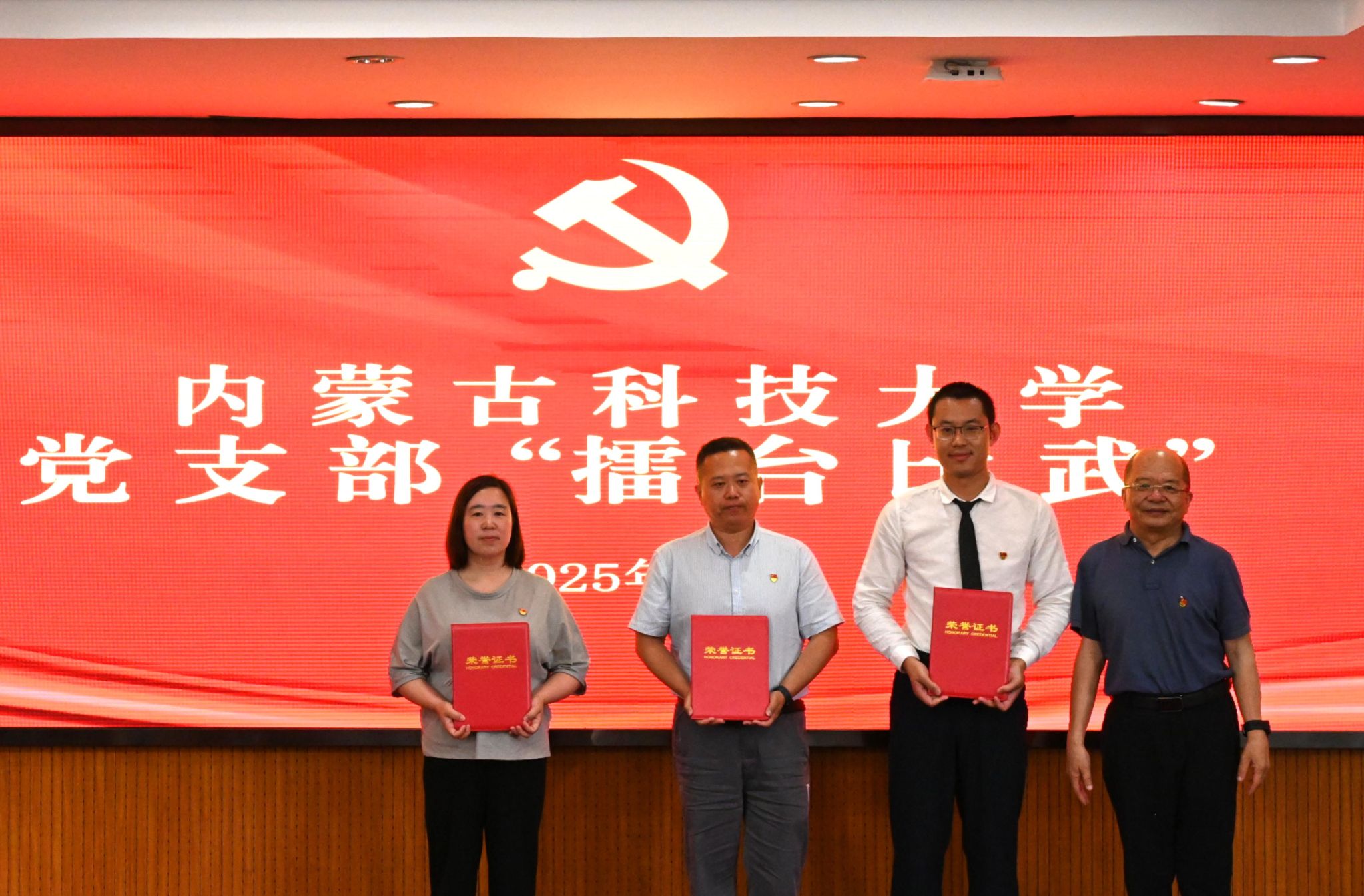 2025年6月30日,学校开展党支部“擂台比武”展示活动,邀请校内外专家担任评委。校党委书记呼和,副校长屈忠义、张新房、李卫平出席活动并为获奖党支部颁奖。各院处级党委(党总支)书记、党支部书记代表、师生党员代表等130余人现场观摩。