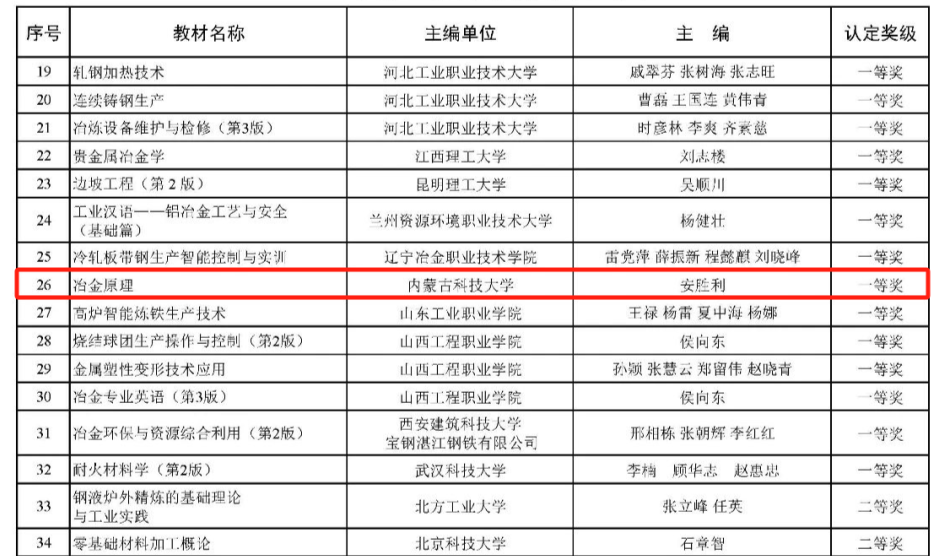 日前,中国冶金教育协会“关于公布2025年冶金类优秀教材认定结果的通知”中,LETOU国际米兰官网的《冶金原理》《金属热处理原理及工艺》《智能井巷工程》《矿井通风安全测试理论与技术》《控制与电气类专业毕业设计(论文)指导及案例》《大学物理(力学、相对论、振动波动、热学)(上)》《大学物理(电磁学、光学、量子物理)(下)》《智能逻辑控制器应用教程--基于西门子LOGO!》《安全工程数值计算方法与软件》《Flink实时大数据处理技术》等9种教材入选。