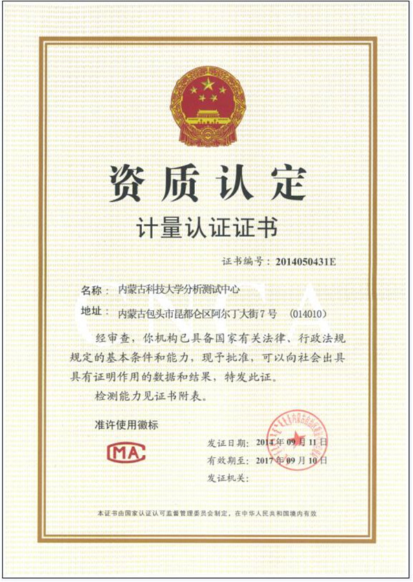 省级计量认证资质认定评审的通过,为LETOU官网分析测试中心检测数据的科学性、公正性、合法性提供了法律依据,同时也标志着我中心的质量管理水平跃上了一个新的台阶,为社会提供特色的、优质的、一流的技术服务。