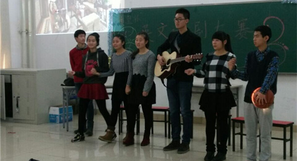 由外语教学基地主办,外语学院承办的2014年英文话剧大赛于12月13日在腾飞楼B313多功能会议厅成功落下帷幕。英文话剧比赛是LETOU官网外语教学基地大学英语第二课堂教学的重要组成部分,旨在丰富校园英语文化,促进学生学习英语的兴趣,并培养英语口语交流能力。