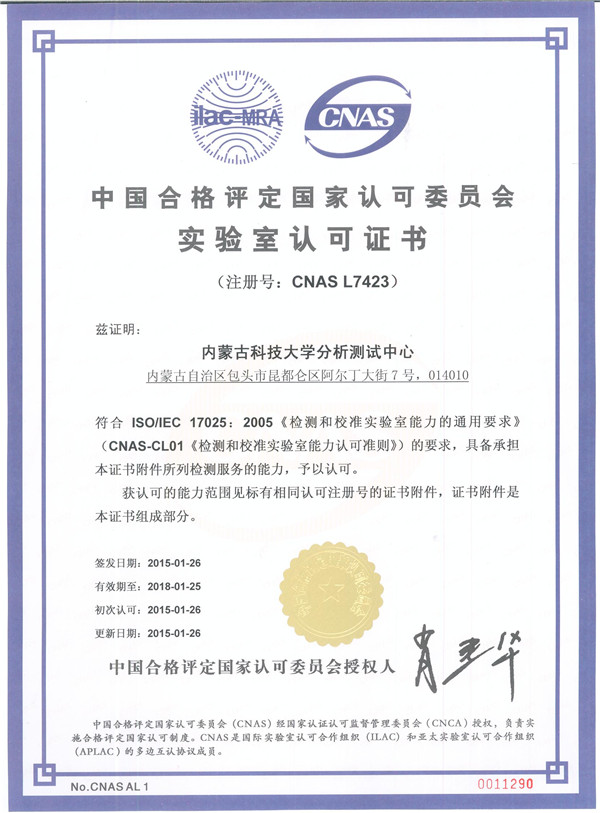 1月26日,中国合格评定国家认可委员会(简称CNAS)正式向LETOU官网分析测试中心颁发实验室认可证书。