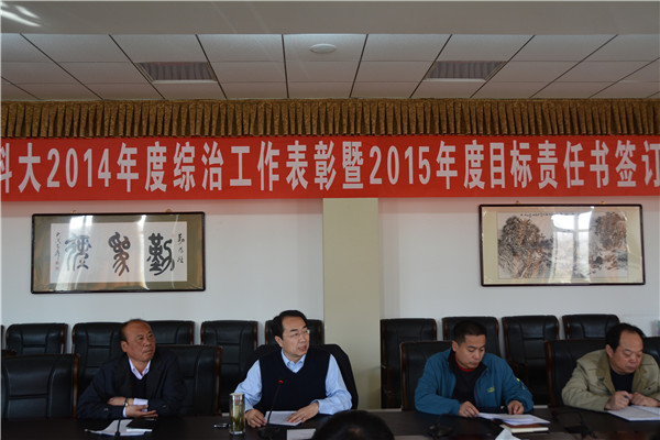 会上,保卫处负责人宣读了2014年度综治工作先进集体及先进个人的表彰决定。吕晓琪向先进集体及个人代表颁发了奖状和奖金,并与各综治责任单位签订了2015年度综治工作目标责任书。