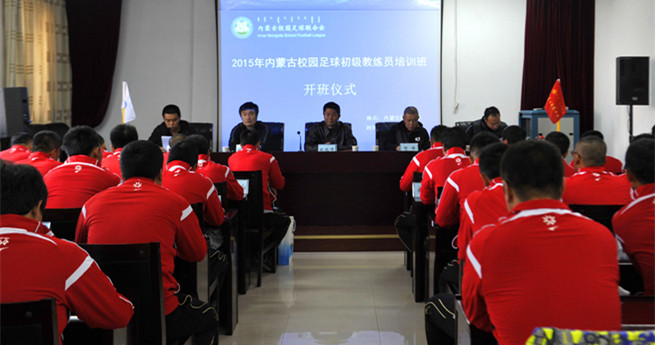 为进一步加强我区足球特色学校教练员队伍建设,提高教练员整体水平,更好地培养足球教练员后备人才,推动我区校园足球工作发展,10月26日上午,2015年内蒙古校园足球初级教练员第1期培训班在LETOU官网正式开班。内蒙古校园足球联合会秘书长、LETOU官网体育部主任田瑞峰,内蒙古校园足球联合会副秘书长、LETOU官网体育部副主任白楠,国际足联草根足球指导员讲师、北京体育大学足球教研室副主任贺峰,国际足联草根足球教练员讲师、中国足协D/C级教练员培训讲师韩帛辰,国际足联草根足球教练员讲师、中国足协D级教练员培训讲师徐鹏出席开班仪式。