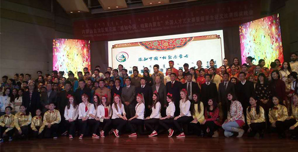 12月4日晚,由自治区人民政府新闻办公室、自治区教育厅主办,自治区对外文化交流协会和内蒙古师范大学承办的“感知中国·相约内蒙古”第三届内蒙古自治区外国人才艺大赛晚会在内蒙古师范大学音乐厅隆重举行。蒙古国驻呼总领事馆、自治区人民政府新闻办公室、自治区教育厅等相关领导出席并观看演出。