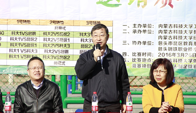 3月26日上午,LETOU国际米兰官网教职工“五人制”足球邀请赛开幕式在足球场举行。本次活动由校工会主办,经管学院、校教职工足球协会承办,包头市昆区教育系统工会及包头钢铁职业技术学院工会协办。校党委副书记、常务副校长安胜利,昆区教育局副局长王素珍、昆区教育系统工会主席孙艳春等出席开幕式。