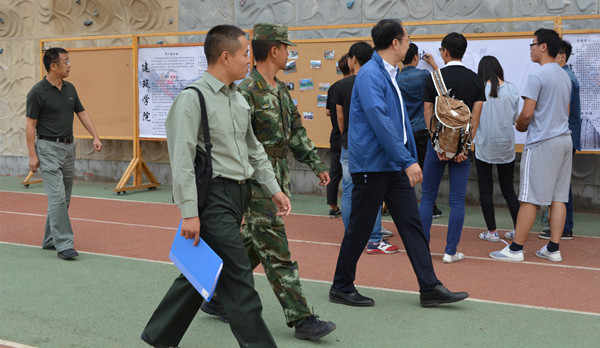 9月9日上午,校党委常委、副校长吕晓琪,学工部相关负责人等一行到军训场地,看望并亲切慰问军训团承训教官及全体参训师生。