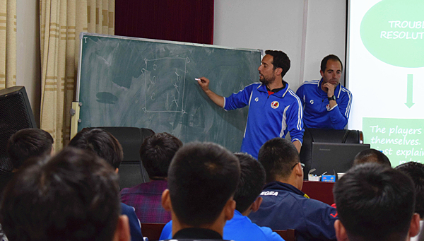 培训内容包括现代足球技战术发展趋势、战术训练理念、现代青少年足球训练体系和方法、国外高水平足球比赛实例技战术分析等理论课程;足球专项体能、技战训练等实践课程。