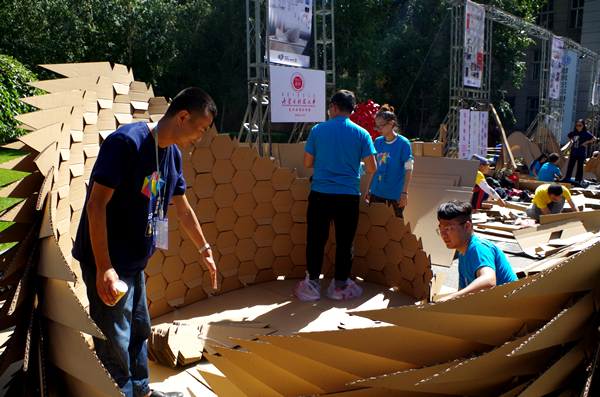 “心境空间构筑和谐”空间艺术构造大赛,由辽宁省美术家协会、辽宁省教育厅共同主办的、面向国内高校每年一届的空间艺术构造竞赛。本届主题为“家乡\故乡\乡村”,各高校团队带着各自创意,在9平方米空间内,现场组装各类充满艺术构想的奇幻空间。
