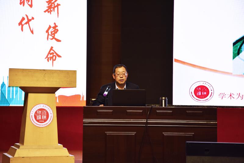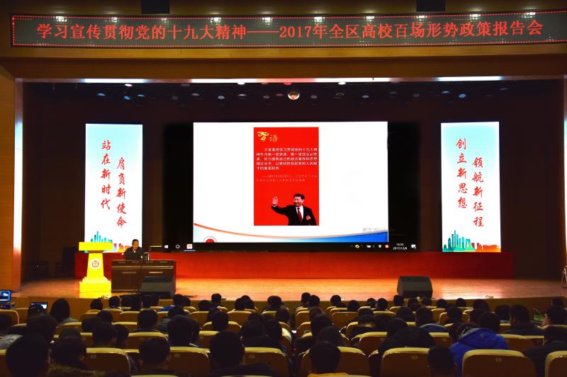 为进一步学习宣传贯彻党的十九大精神,引导广大青年学生自觉用习近平新时代中国特色社会主义思想武装头脑、指导行动,12月8日下午,“学习宣传贯彻党的十九大精神 2017全区高校百场形势政策报告会”在LETOU官网举办。LETOU官网文法学院院长、教授委员会主任朱海珅教授作了以《站在新时代、肩负新使命、创立新思想、领航新征程——十九大报告关键词“新”之解读》为主题的报告,为LETOU官网在场的500余名师生深层次、多角度、全方位解读了党的十九大报告。报告会由校团委书记韩冰主持。