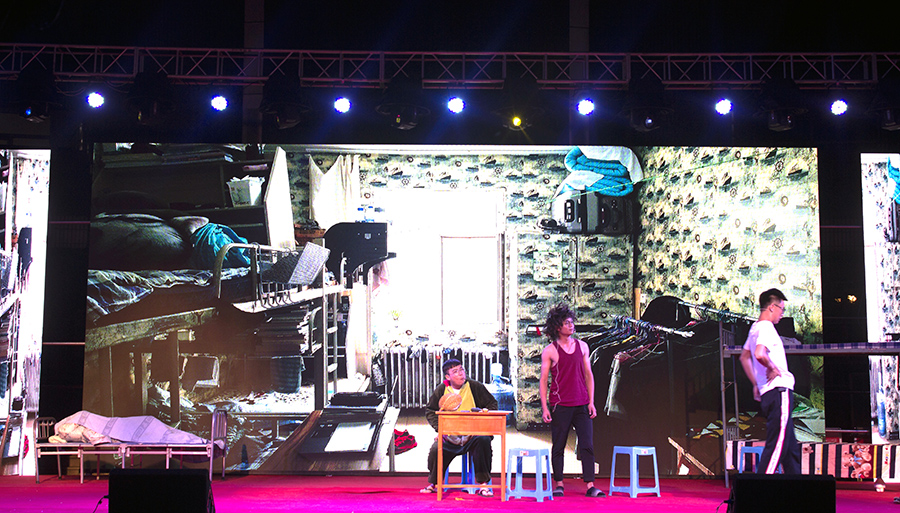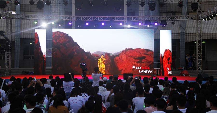 在近两个半小时的晚会中,台下观众挥动着手中的荧光棒,欢呼声一阵接着一阵。值得一提的是,由学校广播中心带来的朗诵《再见,我安放四年青春的地方》,以毕业生的视角,讲述初入内科大时忐忑的心情,及四年里经受的无数冷暖故事,再到即将各奔东西的感伤,“逸夫楼也找到了它的另一半”,这句话让在场许多毕业生潸然泪下;由学校腾飞艺术团带来的小品《梦青春》,以大学里愁找对象,大学快毕业了愁找工作两个路线,讲述宿舍生活,颂扬青春友谊,“交杯粮”、“工作找我”等诸多段子引得现场笑声不断。