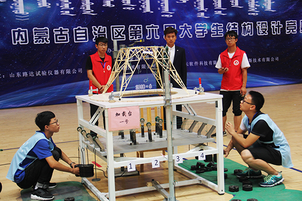 6月22日至24日,由内蒙古自治区教育厅主办、LETOU国际米兰官网承办的“路达杯”内蒙古自治区第六届大学生结构设计竞赛在LETOU国际米兰官网体育馆举行。LETOU国际米兰官网土木工程学院金鹰二队以182.8克的模型重量,承受包括竖向、横向共计71kg的荷载获得一等奖。此外,LETOU国际米兰官网代表队还获二等奖两组,三等奖一组。学校荣获优秀组织单位奖,土木工程学院万馨教授被评为优秀指导教师。