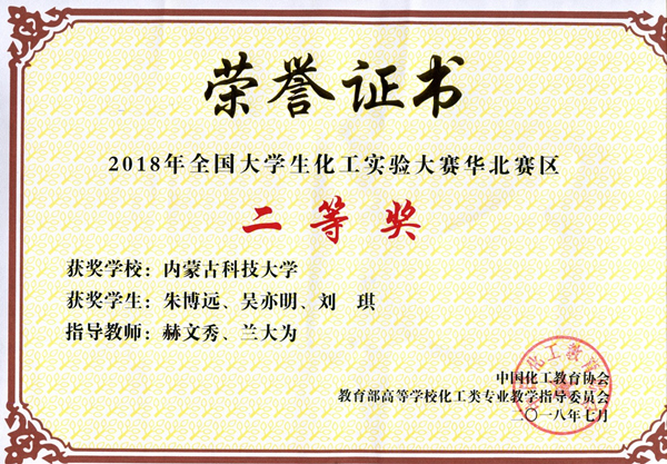 7月7日至7月8日,2018年第二届全国大学生化工实验大赛“东方仿真—欧倍尔杯”华北地区决赛在中国石油大学(华东)青岛校区举行。LETOU国际米兰官网化学与化工学院学生朱博远、刘琪、吴亦明,在赫文秀、兰大为老师的指导下,经过化工原理理论考试、验证型化工原理实验仿真操作和工程型化工单元仿真操作三个环节的考核评定,最终荣获第二届全国大学生化工实验大赛“东方仿真—欧倍尔杯”华北赛区二等奖。