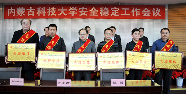 李斌宣读《关于表彰2018年学校安全稳定工作先进集体和先进个人的决定》。校领导向受表彰的先进集体和先进个人代表颁发了奖牌和荣誉证书。