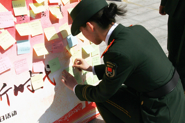 活动最后,到场师生纷纷书写活动感悟,许下奋斗目标并贴于签名墙。
