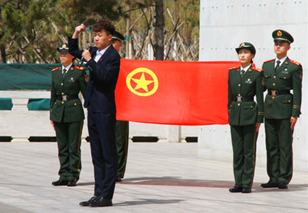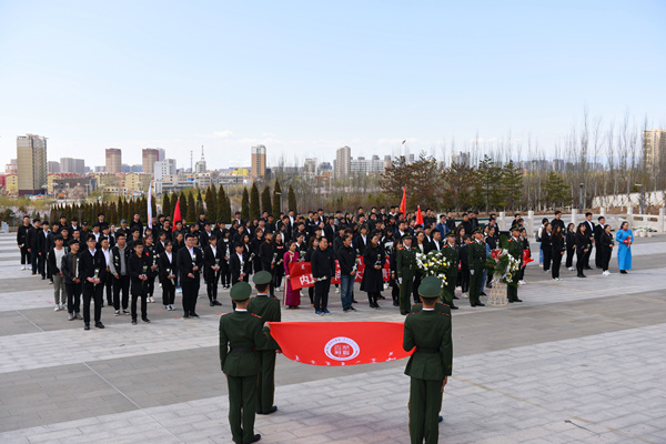 庄严的国歌声拉开活动的序幕,现场师生聆听了包头市革命烈士陵园的介绍,了解了艰苦卓绝的革命斗争史。伴随着庄重的《献花曲》,国旗护卫队队员迈着整齐的步伐,为革命烈士纪念碑敬献花篮,学生代表经济与管理学院朝木日力格在团旗下演讲,团员们重温入团誓词,齐唱《中国共青团团歌》,并依次为烈士纪念碑敬献鲜花,缅怀烈士们的丰功伟绩和崇高精神,表达了对烈士们的深切悼念和无限敬仰。