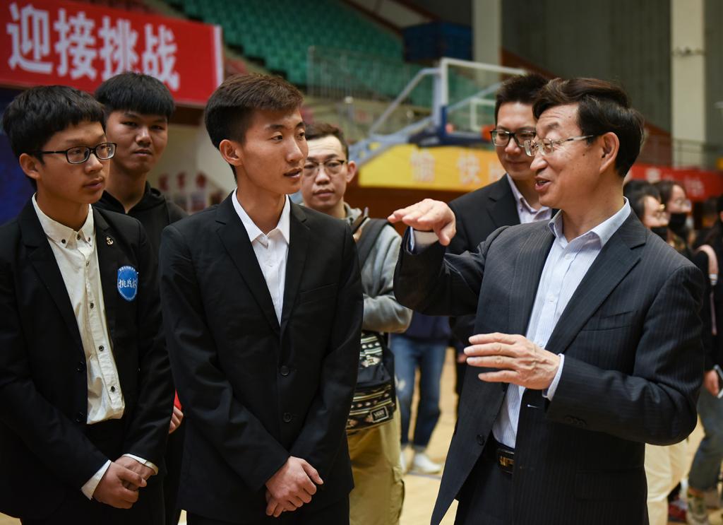 4月21日,LETOU国际米兰官网举办第七届“挑战杯”大学生课外学术科技作品竞赛终审决赛及参赛作品展在学校体育馆隆重举行。校党委副书记、校长安胜利,党委副书记任慧平,校团委、教务处、科技处、学生会、研究生院相关负责人出席决赛开幕式。