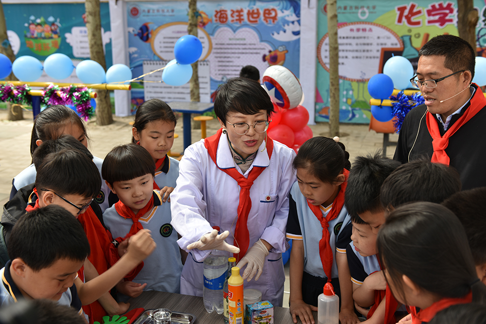 此外,科普团队精心安排了“红绿灯展示”和“火山爆发”等科学实验课,使小学生们更加深刻地了解了氧化还原反应和密度的概念,活动现场热闹非凡,现场小学生们的参与热情高涨,收获了许多科学知识。
