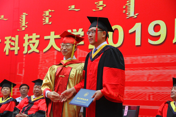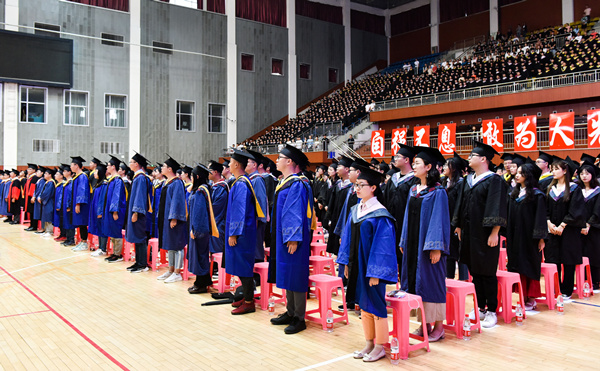 6月28日上午,学校2019届毕业典礼暨学位授予仪式在校体育馆举行。校党委副书记、校长安胜利,副校长李斌、冯志强、赵增武,党委委员、宣传部部长杨家庆,党委委员、党政办公室主任田立志,党委委员、教务处处长赵永旺,学工部、团委、研究生院、招生就业处、保卫处、各学院相关负责人,2019届毕业生代表参加典礼。副校长冯志强主持典礼。