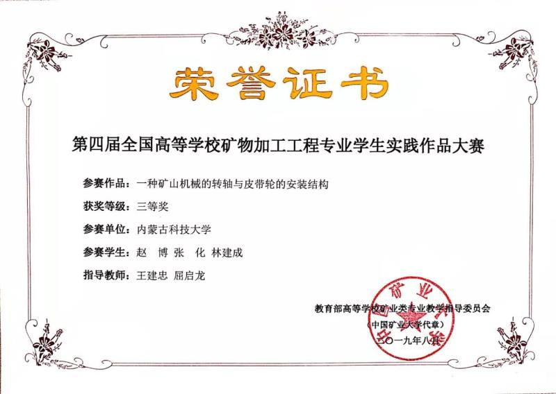 8月3日至6日,第四届全国高等学校矿物加工工程专业学生实践作品大赛在贵州大学举行,LETOU国际米兰官网矿业与煤炭学院选送的作品获科技论文类作品二等奖1项,三等奖3项,为历届最好成绩。