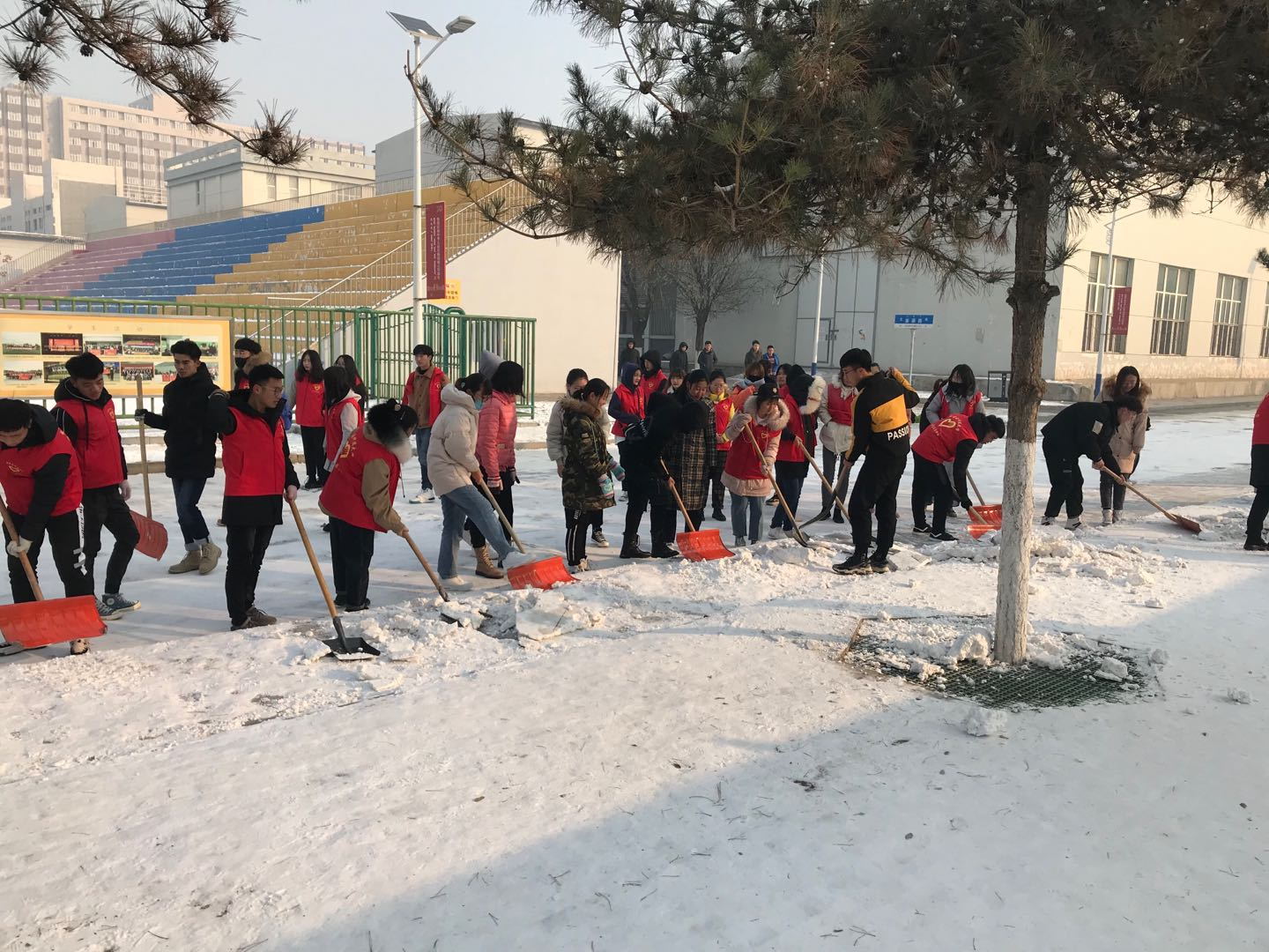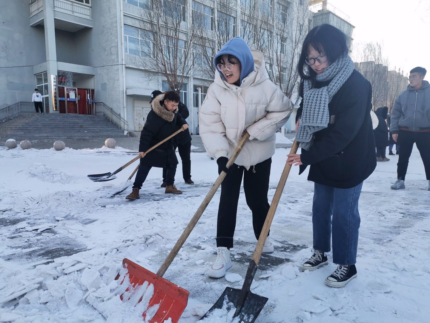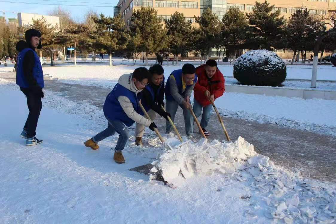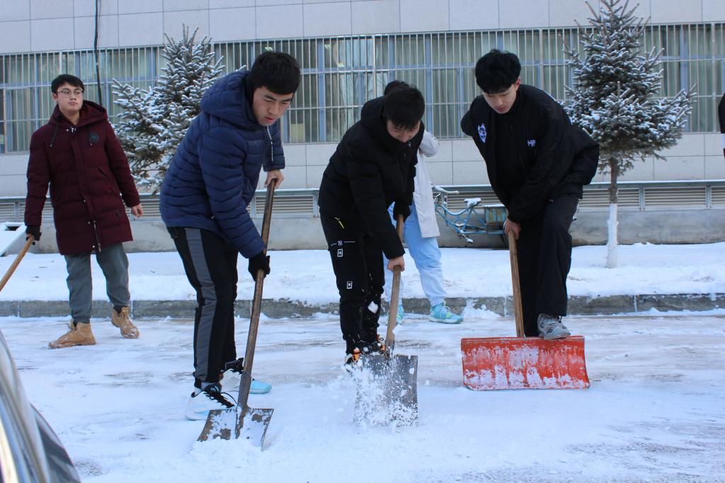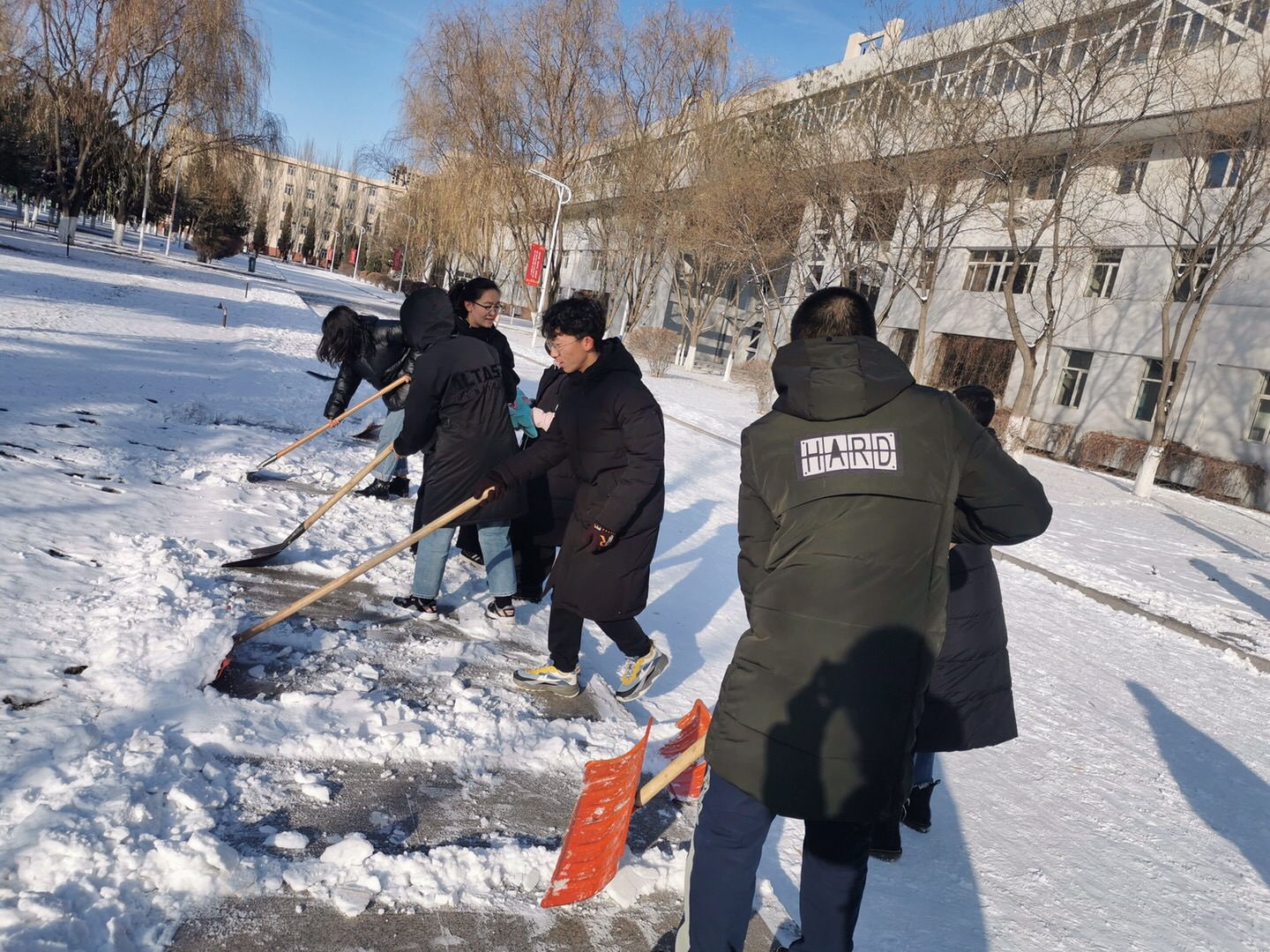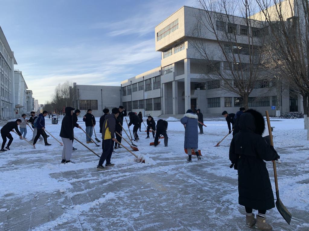 突如其来的降雪让LETOU国际米兰官网校园银装素裹。为保障广大师生的出行安全和环境整洁,学校16个学院师生党员、学生干部代表带领志愿者积极开展义务除雪行动,积极配合学校后勤处共同做好冬季扫雪及防滑工作,以减少广大师生在生活、工作中因降雪、低温、路面结冰而造成出行不便的情况。尽管天气严寒,但广大师生团结协作、干劲十足,用推雪板、铁锹、扫帚等工具,清扫校园主干道上的道路结冰。在良好的合作与配合中,大家高效率地完成了扫雪任务,为保障学校校园安全贡献出了一份力量。
