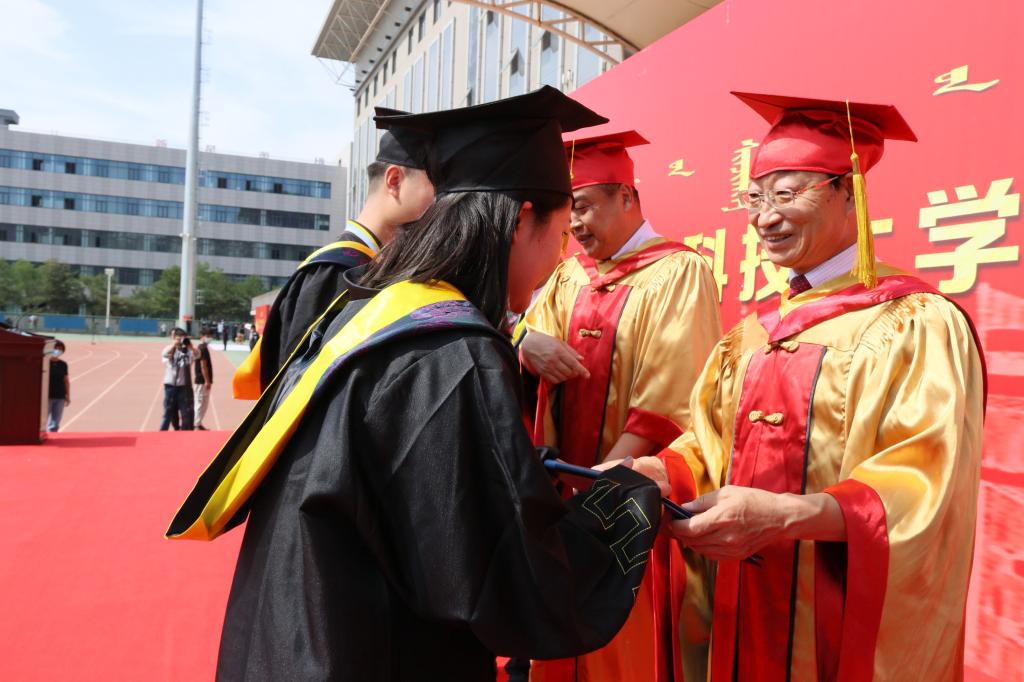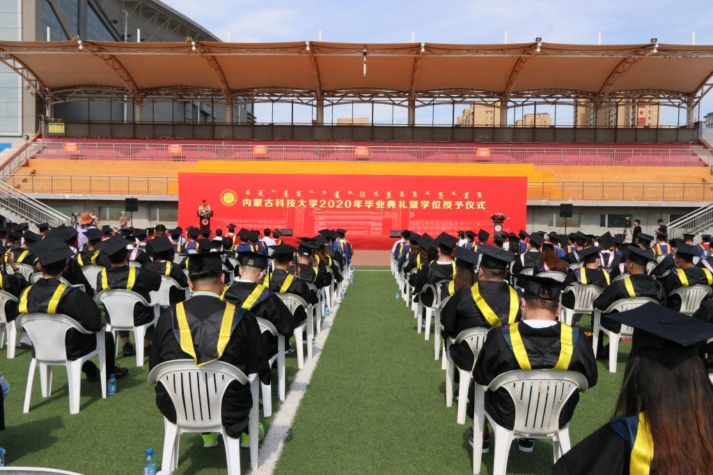 2020届毕业生代表、能源与环境学院李志新发言:阴山南麓黄河旁,文馨书院春晖堂,鹿鸣呦呦书声朗,穹庐天下品学尚。别了,科大!我们永远不会忘记心底的热爱与热泪盈眶的感动。感谢科大给我们更加有力的翅膀去翱翔天际。毕业之后,我定将继续秉承科大“自强不息、敢为人先”的校园精神和“百炼成钢”的校训,驶向更广阔的天空!