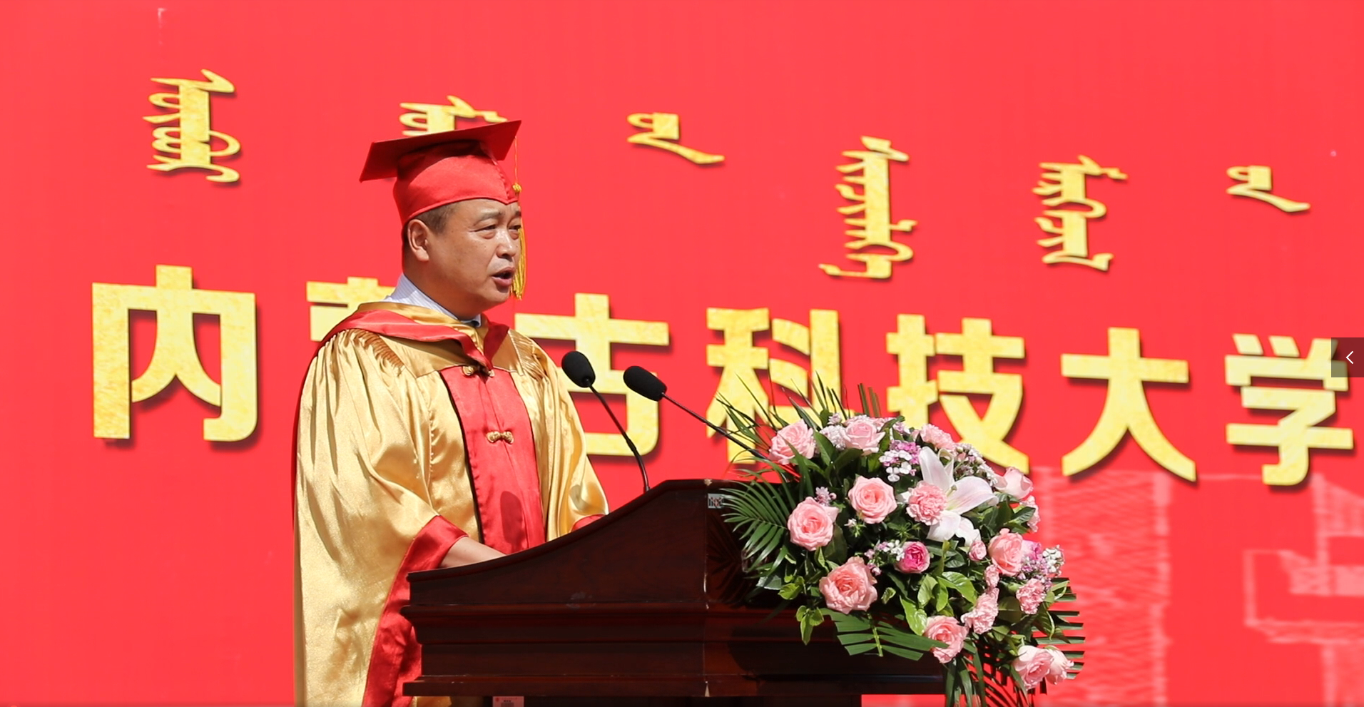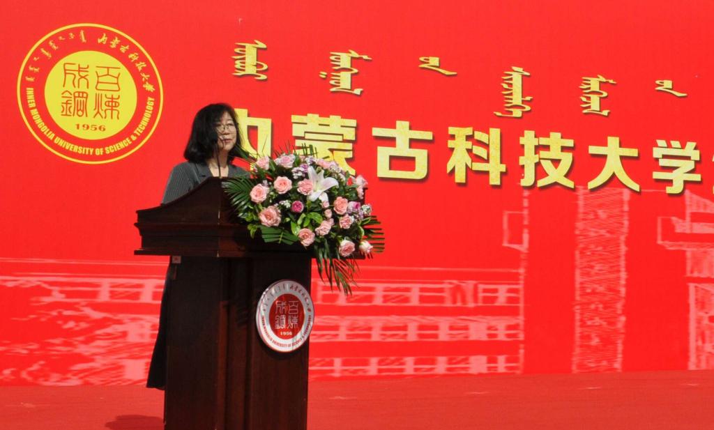 教师代表材料与冶金学院赵莉萍教授以包头市的市花——小丽花借喻对毕业生的殷切期盼。希望同学们有自信、有担当、务实笃行。不管做什么事,记住自己的身上铭刻着LETOU国际米兰官网的烙印,秉承“自强不息、敢为人先”的校园精神和“百炼成钢”的校训,将志存高远贯穿于务实笃行中,将雄心壮志落实到脚踏实地上,努力与时代同行,用奋斗点亮人生!