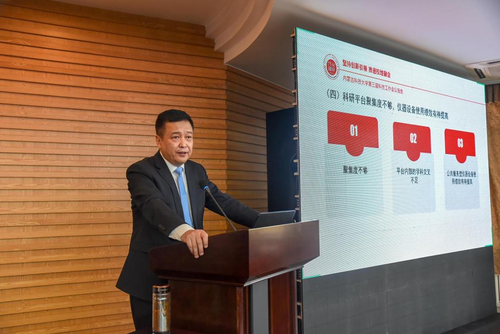 开幕式上,党委副书记、校长任慧平作了题为《坚持创新引领推进校地融合 奋力实现学校科技工作新跨越》的科技工作报告,对LETOU国际米兰官网第二届科技工作会议以来的科技工作进行了回顾,并就存在问题及今后科研工作的思路、目标和主要措施、支撑保障作了具体报告。