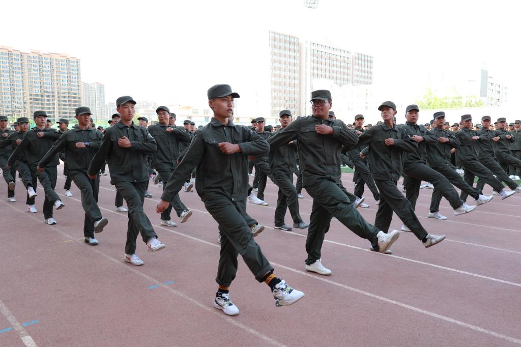 在分列式表演前,参加军训的五十二个连队接受了副校长赵增武的检阅。在雄壮激昂的乐曲声中,每一个连队,在教官的带领下,迈着整齐划一的步伐,喊着铿锵有力的口号,士气昂扬地从主席台前走过,完美展现了16天军事化的训练结果。