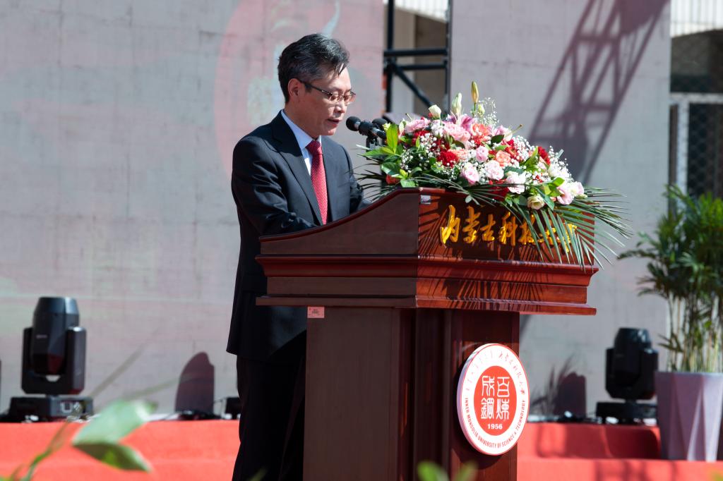材料与冶金学院(稀土学院)院长宋希文作为教师代表,在发言中道出了内科大师生迈进新时代的使命与担当。他说,蓝图已经绘就,我们正向着早日建成人民满意的好大学进军,全校师生已经做好了充分准备,努力实现学校在立德树人、科学研究、服务社会、文化传承、对外合作与交流等方面的新突破。