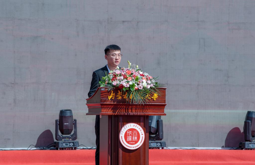 在校生代表、2018级金属材料工程专业沈鸿葵同学表达了对母校的热爱之情,表示要以最饱满的精神状态投入到大学的学习和生活中,勤奋创新、锐意进取,秉承“自强不息,敢为人先”的科大精神,不负青春,报效家国。