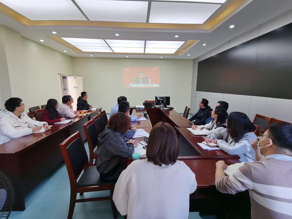 校党委理论学习中心组在行政楼A205会议室集中收看了新闻发布会直播。