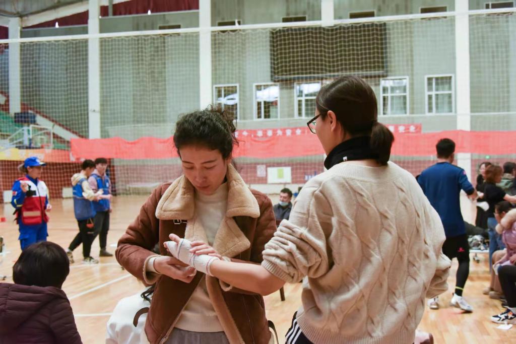 培训中,六位培训老师将理论讲解和现场示范结合,重点讲解了气道异物梗阻急救、现场心肺复苏操作程序要点、创伤止血技术、现场包扎、骨折固定、伤病员搬运技术,并强调了一些常见急症、意外伤害、突发事件等急救中的注意事项与常识。在实践过程,六位老师手把手指导学员模拟急救练习,确保每一位学员将步骤和手法学习到位。