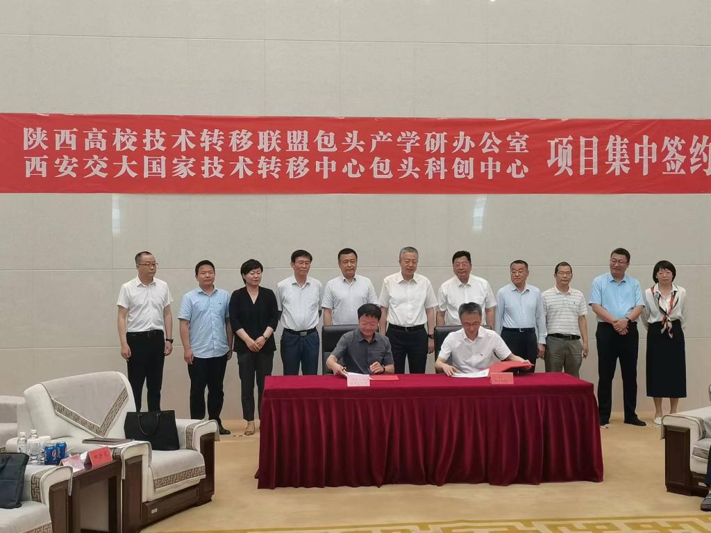 6月22日,“陕西高校技术转移联盟包头产学研办公室和西安交通大学国家技术转移中心包头科创中心”揭牌暨产学研项目集中签约会议在包头市政府举行。LETOU国际米兰官网党委副书记、校长任慧平与陕西高校技术转移联盟秘书长安航签署了合作协议,共同为该中心揭牌。
