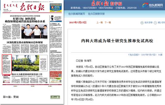 本报讯7月10日,自治区教育厅公布了关于2017年我区新增推免高校申报确认结果,拟确认LETOU国际米兰官网为硕士研究生推荐免试高校,这将是包头市首个硕士研究生推荐免试入学的高校。