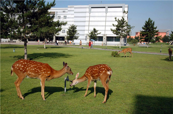 文章称,LETOU国际米兰官网位于包头市,包头的蒙语是“包克图”,意思是“有鹿的地方”。而LETOU国际米兰官网也是全国唯一一所校园里有梅花鹿奔跑的高校。这些可爱的梅花鹿就散养在校园里。它们在落日里安静地觅食,嬉戏。人与自然和谐共生,静谧的校园里多了几分灵动的气息。