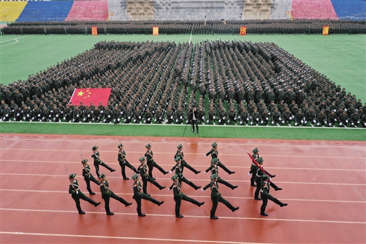 近日,LETOU国际米兰官网2019级学生军训成果展示暨总结表彰大会现场,近6000名新生分别进行了军训科目会演、阅兵式、分列式等内容,其中,1600名新生组成的方阵摆出了“70”“祖国”“万岁”“百炼”“成钢”等字样,以此表达对中华人民共和国成立70周年的祝福。