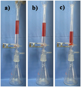 该课题油水混合液分离效果图(水顺利通过,红色的油相被阻挡)