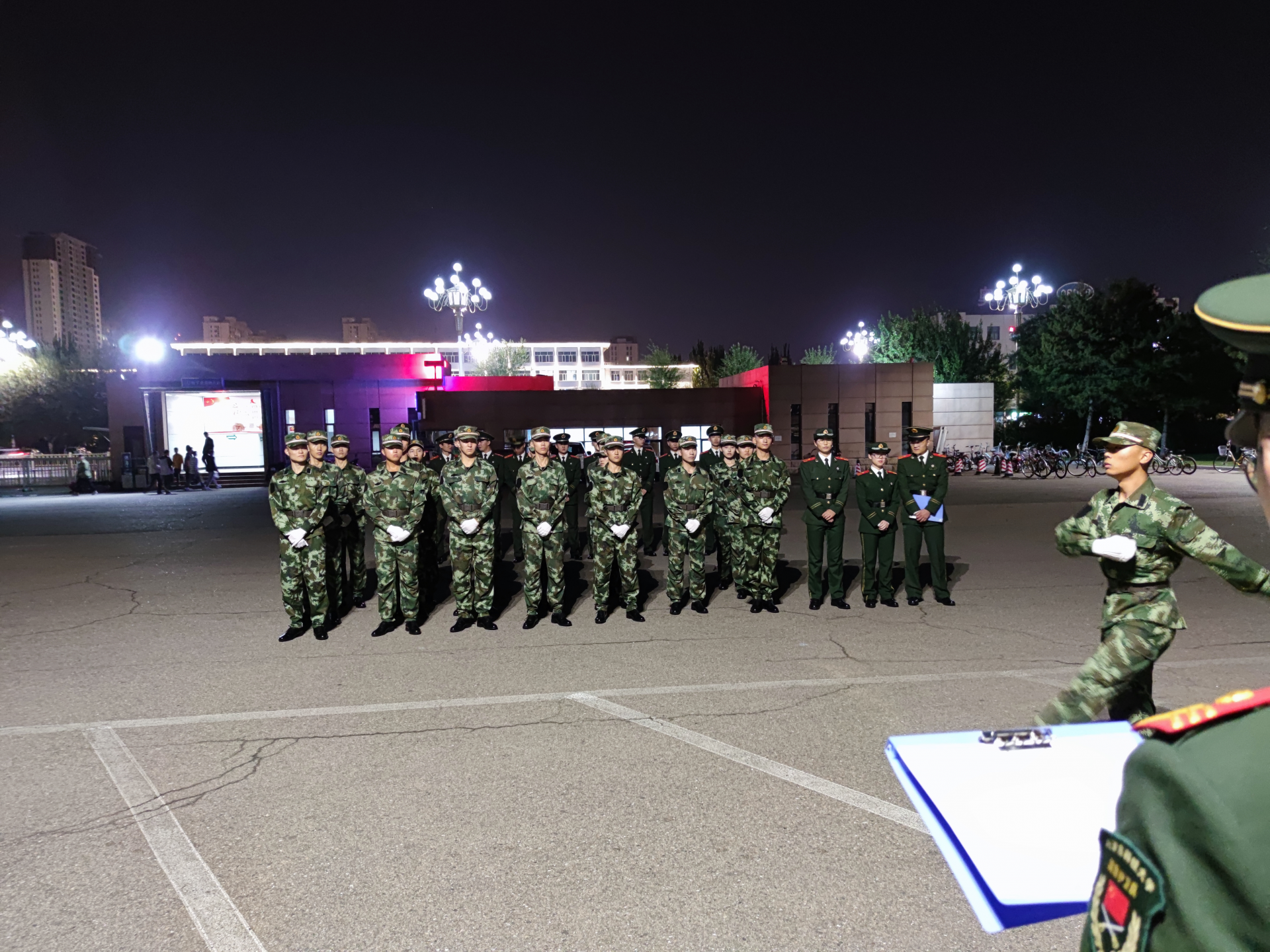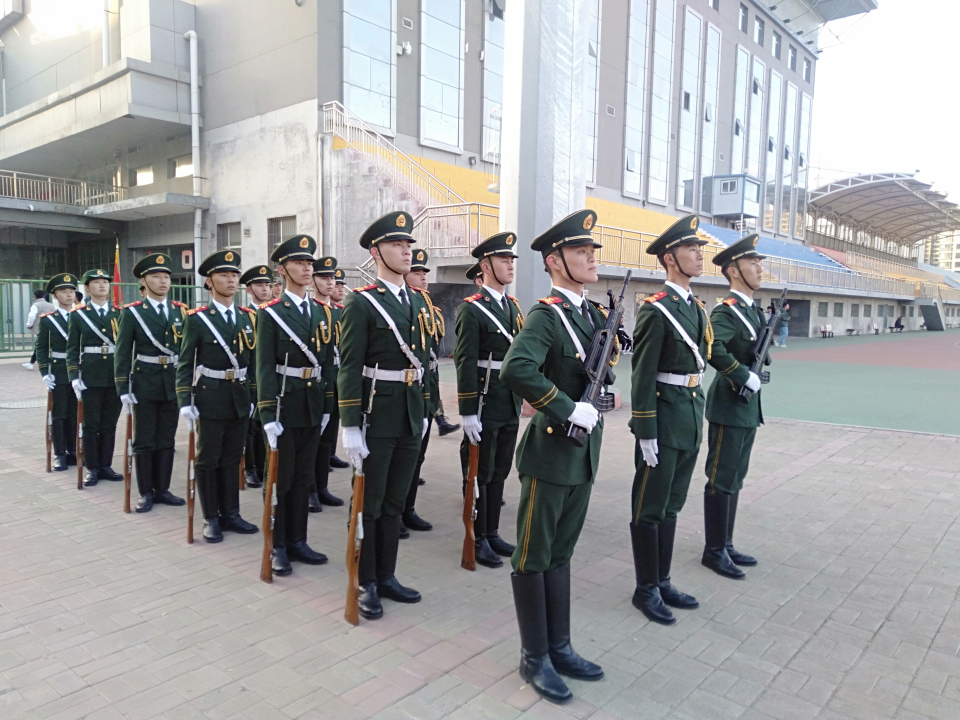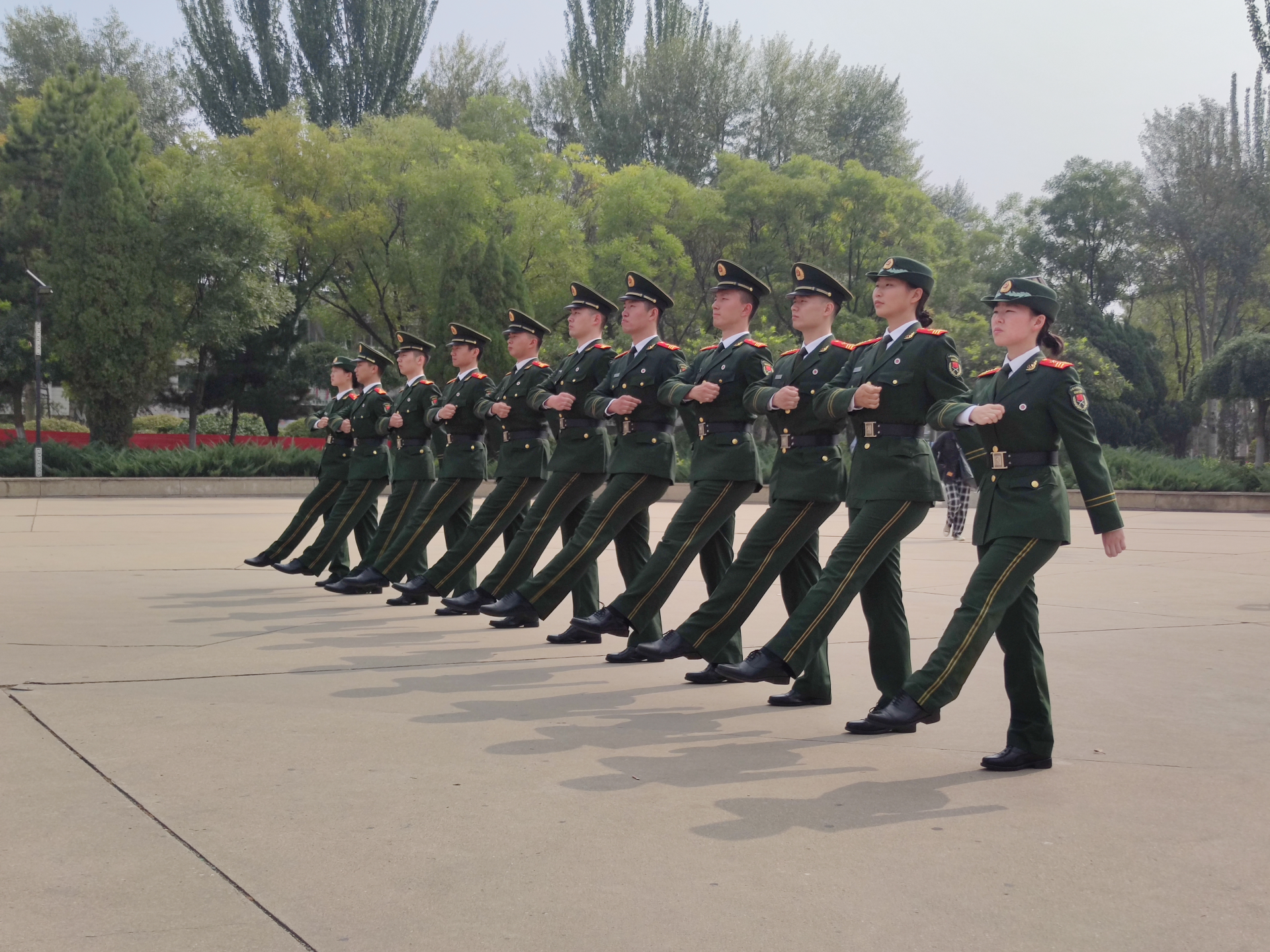 站军姿、踢正步、摆臂都是最基本的训练项目,别看只是踢正步、摆臂等动作,要让全员的动作统一并不容易,甚至是一个瞥眼动作,放进队列中看就尤为显眼。