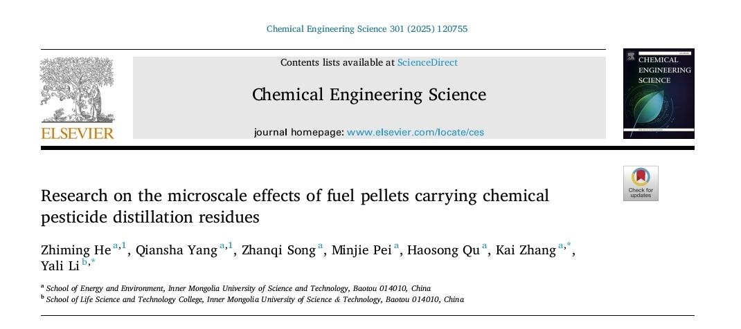 针对有机危险废物在高温热环境中彻底分解问题,研发出了核-壳结构含能材料微颗粒的制备与性能调控技术,有效控制了气态产物中污染物的含量。相关研究成果“Research on the microscale effects of fuel pellets carrying chemical pesticide distillation residues”发表在由荷兰爱思唯尔(Elsevier B.V.)出版的开放获取SCI期刊《Chemical Engineering Science》上,该期刊聚焦化学工程科学基础与工程应用研究。最新影响因子为4.3(2025年),为“中国科学院SCI分区”二区TOP期刊。原文链接:https://doi.org/10.1016/j.ces.2024.120755