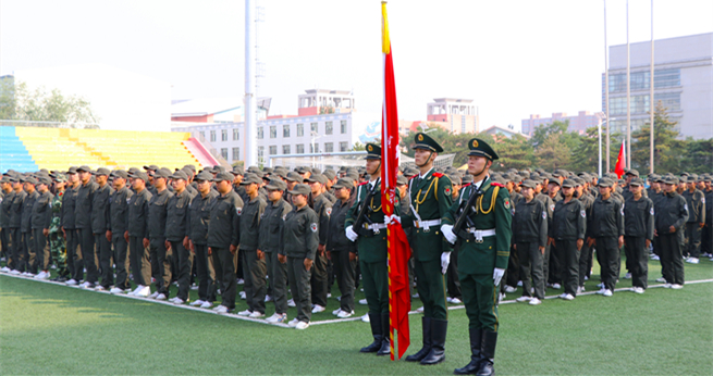 9月15日下午,LETOU官网2017级学生军训结训式在校田径场隆重举行。包头军分区副司令员韩秋岐上校、武警包头支队政委刘玉柱上校、包头市昆区人民武装部部长卢伟上校,校党委常委、副校长吕晓琪,校党委常委、副校长李斌,校党委常委、组织部部长冯志强,校党委常委、宣传部部长杨家庆,学生工作委员会、党政办公室、招就处、保卫处相关负责人出席结训式。
